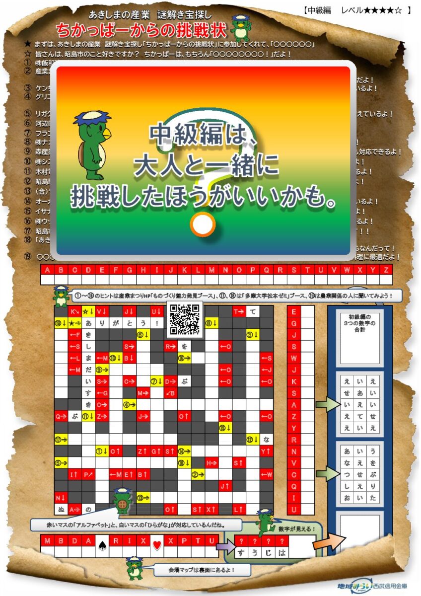 「謎解き用紙」は、「初級編」と「中級編」があって、当日会場で配られるよ!